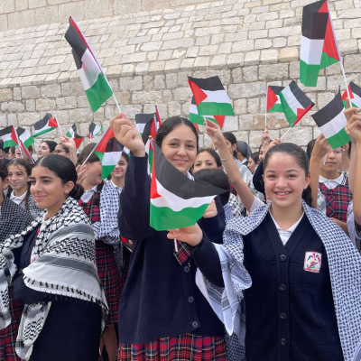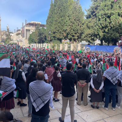 "Les enfants se sont rassemblés sur la Place de la Nativité, brandissant des drapeaux palestiniens et des images des enfants martyrs de Gaza, exhortant le monde, depuis le lieu le plus sacré de l'héritage chrétien, à faire pression sur Israël pour mettre fin à ses crimes et ouvrir la voie à la responsabilisation des criminels de guerre israéliens."
