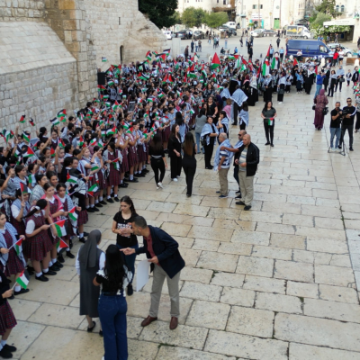"Après que les cloches de l'Église de la Nativité aient sonné et l'appel à la prière de la Mosquée d'Omar Ibn Al-Khattab ait été entendu, les organisateurs de l'événement du bureau du Président, du ministère de l'Éducation et de la municipalité de la ville ont confirmé que leur message est une demande humanitaire palestinienne au monde, représentant la nécessité de mettre fin à l'agression de l'occupation envers les enfants de Bethléem."